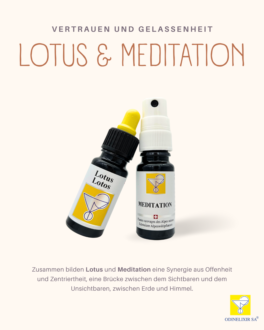 Zusammen bilden Lotus und Meditation eine Synergie aus Offenheit und Zentriertheit, eine Brücke zwischen dem Sichtbaren und dem Unsichtbaren, zwischen Erde und Himmel.